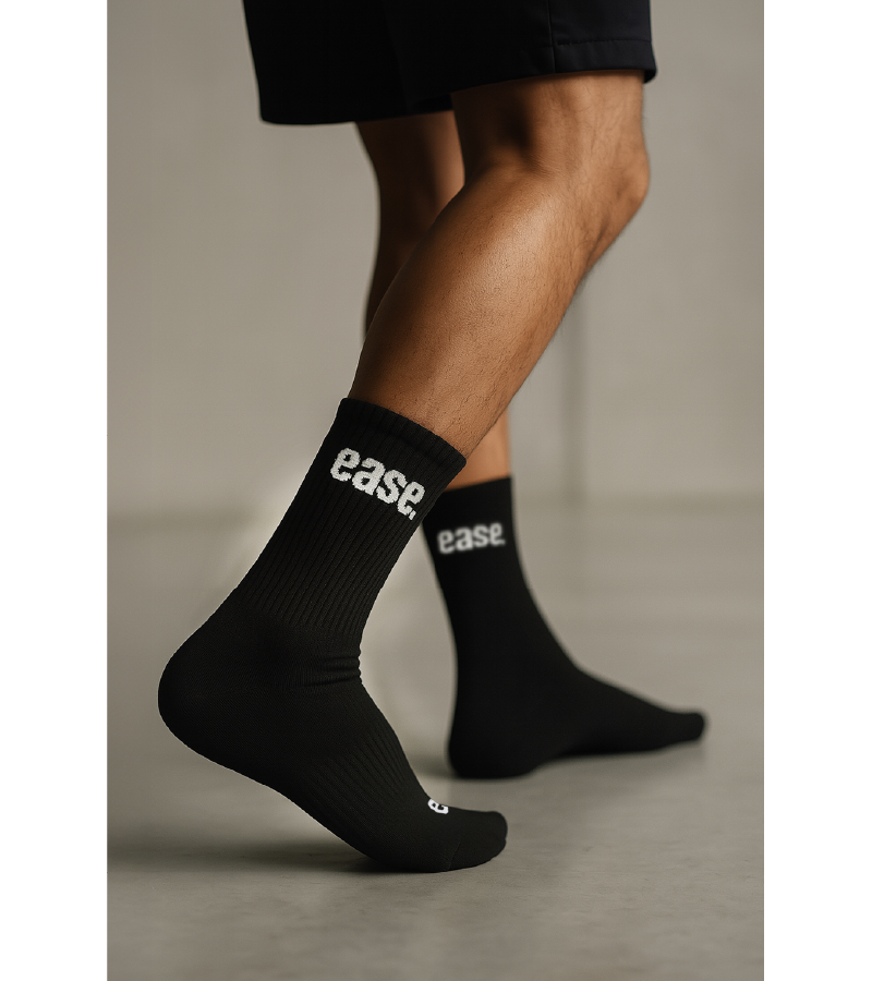 Bij ease. werken we met One Size fits all. Dankzij de hoogwaardige materialen en slimme pasvorm sluiten onze sokken comfortabel aan op vrijwel iedere voet, van maat 35 tot en met 47. Ze rekken mee zonder hun vorm te verliezen, dus één maat is écht geschikt voor iedereen.